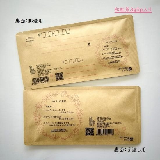 お茶メール(選べるメッセージ・バラのブーケ)【静岡県掛川市産/産地直送/和紅茶ティーバッグ(3g×5)】